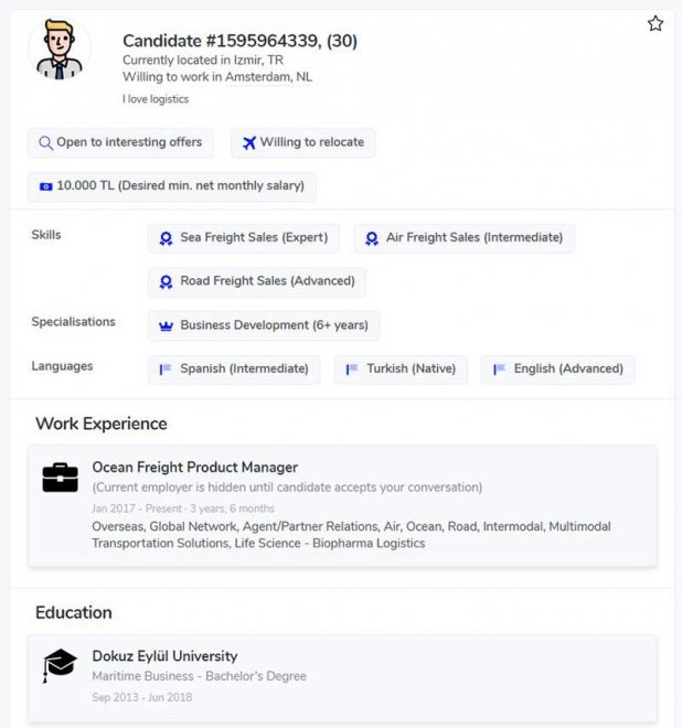 Yani hiçbir firma, aday istemediği sürece adayın profilini ve iletişim bilgilerini göremez. Geleneksel kariyer platformlarında pasif iş arayan adaylar yoktur ve para veren her firma her adayın bilgilerine ulaşabilir.